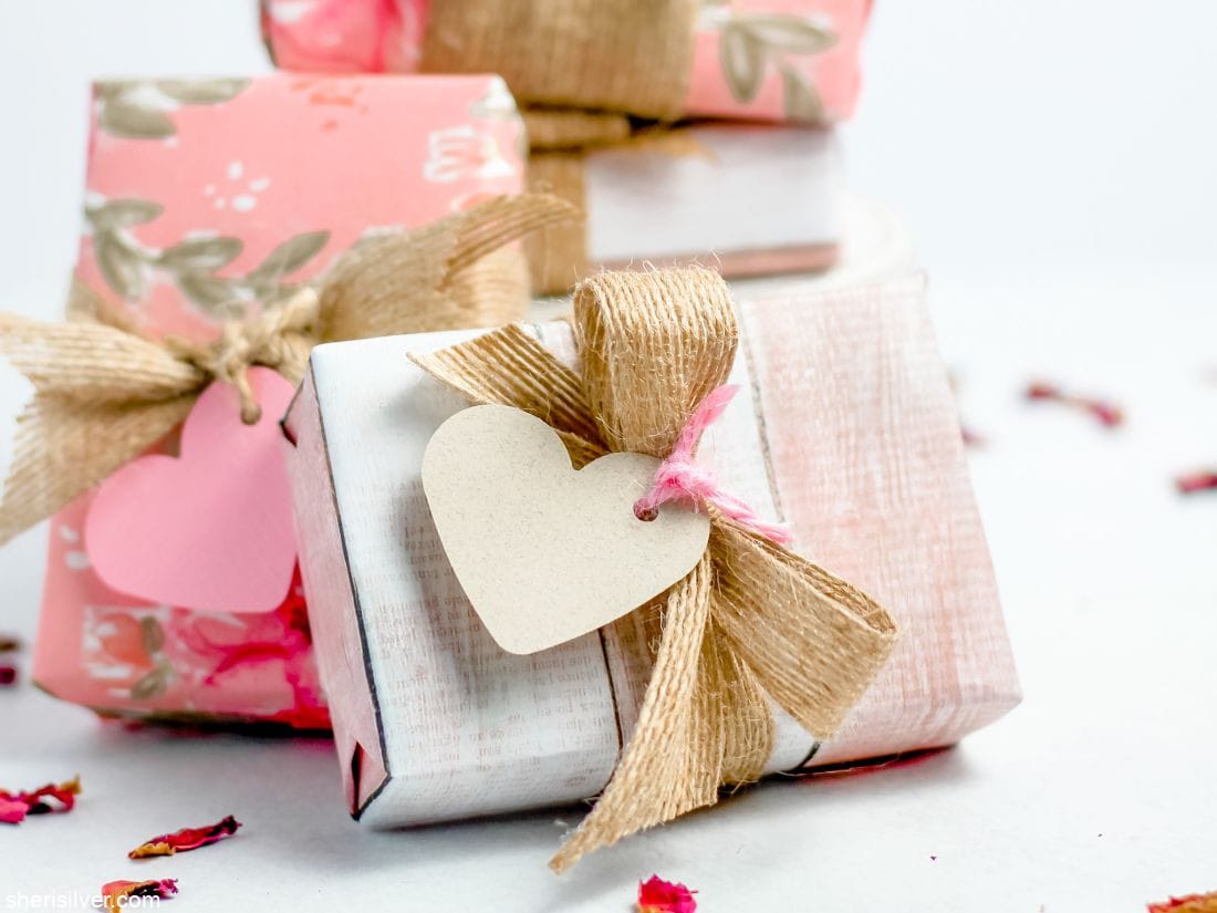 I wrapped the soaps in pretty papers to give as teacher gifts for Valentine’s Day (and kept one for myself!).