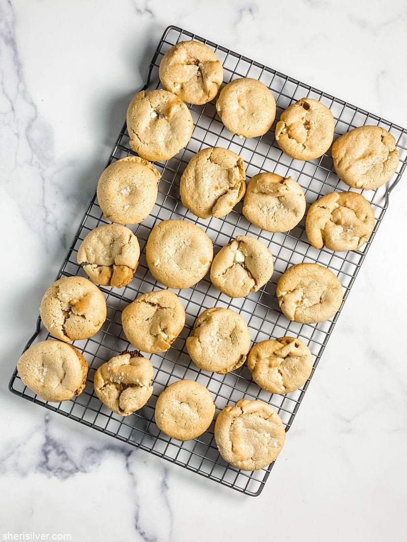 Bake for 9 – 11 minutes or till golden brown around the edges. Remove from oven and transfer to a wire rack to cool.