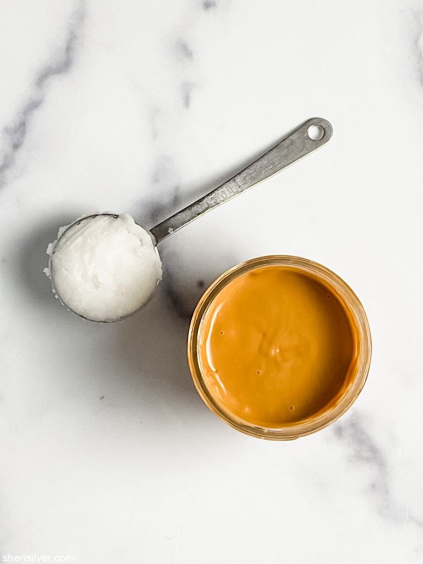 I had about 1/2 cup (4 ounces) leftover from the cookie recipe and added 1 tablespoon of coconut oil.