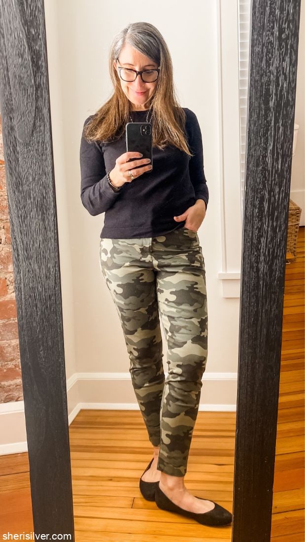 The skinny fit and bit of stretch are helping to ease the transition from leggings, and the camo print just makes me happy. They’re on sale too!