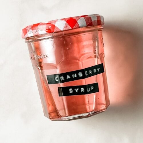 You’ll start by making a classic simple syrup – bring water and sugar to a simmer, remove from heat and add the cranberries. Cover and steep, then drain the cranberries, reserving the liquid (more on that in a bit!). Spread the berries in an even layer on a parchment covered cooling rack and let dry for one hour. Toss in more sugar and enjoy!